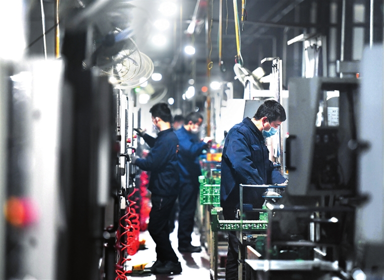 ????為實現此目標,公司上下,心往一處想、勁往一處使,全力打好這場硬仗。上游坯件供應有問題,公司調整力量、挖掘潛力,解決外協產品瓶頸;生產線上缺人,后勤部門組織60人的隊伍,點對點地支援生產一線;分廠設備維修力量不足,設備制造科抽調精兵強將下沉一線;員工自我防控意識有松懈,生產工序出現問題,100多位黨員成立監督服務崗、黨員義工突擊隊主動檢查、主動突擊……在兩千多名員工的共同努力下,目前公司已提前完成第二階段任務,產能恢復突破100%,每天產值超240萬。