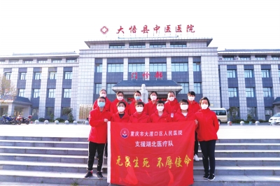 ????2020年的2月,新冠病毒肆虐將軍之鄉(xiāng),群眾的生命健康遭受嚴(yán)重威脅。2月25日,大渡口區(qū)第二批援鄂醫(yī)療隊(duì)25名白衣天使受命趕赴大悟縣,從先期支援的醫(yī)療隊(duì)手里接過(guò)接力棒。其中,來(lái)自區(qū)人民醫(yī)院的12名醫(yī)護(hù)人員進(jìn)入大悟縣中醫(yī)醫(yī)院,承擔(dān)起救治任務(wù)。