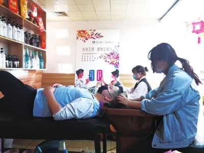 ????“這家店就在我家樓下,我們一家人都是在這里理發(fā),不僅離家近,而且服務特別好。”春暉路街道錦鳳社區(qū)居民魏銘磊告訴記者,店里還有果盤、小吃等,理發(fā)時間久了還能過一過嘴癮,打發(fā)時間。