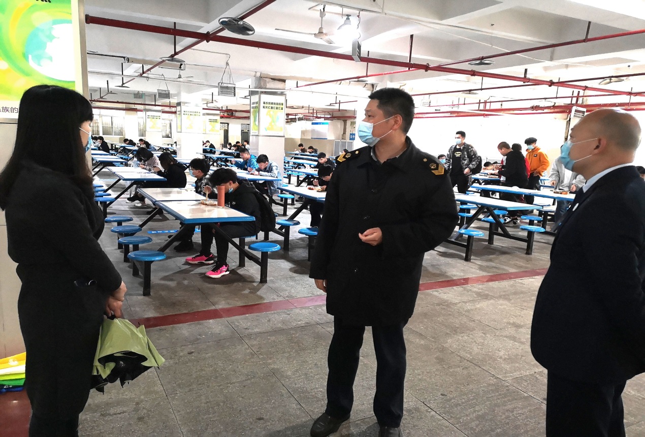 ????隨著全市疫情得到有效控制,從4月20日起,區市場監管局對已開學復課的10所中學開展駐點食品安全監管及保障;期間,駐點人員“定點定人定時”進駐學校,確保全區不發生“校園食品安全事件”和“負面輿情傳播事件”兩條紅線,守住食品安全底線。駐點指導食堂就餐保障。駐點人員對照《餐飲服務日常監督檢查要點表》逐項檢查,食堂從業人員必須100%進行核酸檢測,檢測無問題后方可上崗。對首批開學復課的學校食堂操作間、食物貯存室、就餐大廳進行“搬家式”大掃除,督促餐飲從業人員認真執行《餐飲服務食品安全操作規范》要求,突出就餐場所清潔衛生、食品留樣、就餐位置等關鍵環節,嚴防學校食堂使用因長期停用而受到污染的飲用水加工制作食品。