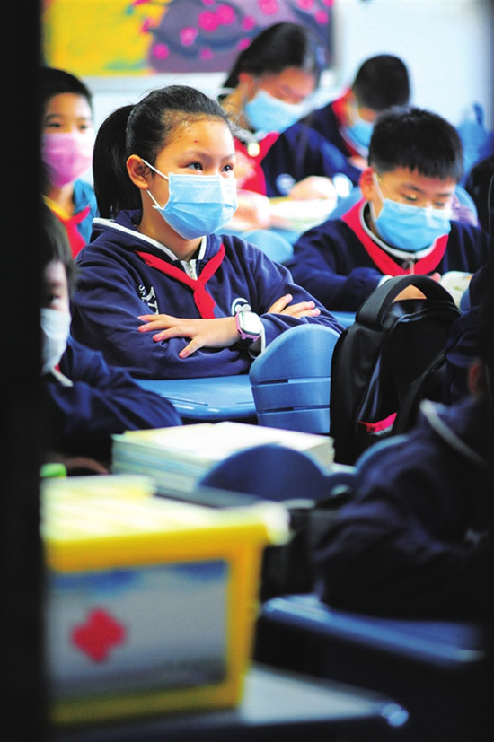 育才小學,口罩擋不住學生閃亮的求知眼神。