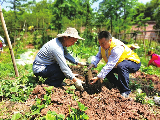 “大家取苗要輕,不要傷到根須,放苗后先用一層細土踩緊,再堆一層細土……”在李子樹苗栽種現場,建勝鎮農技員和志愿者手拿鋤頭,一邊挖土,一邊用通俗易懂的語言為村民講授李子樹的種植技術、病蟲害防治等知識,并現場為村民解答疑難,確保李子樹變為群眾的“致富樹”。