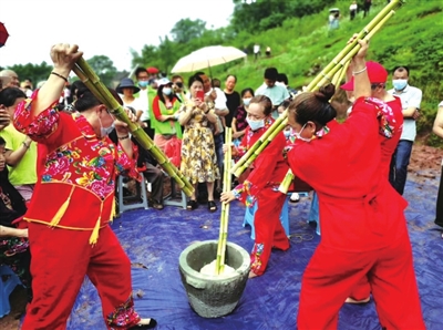 此外,活動現場還設有農耕文化展示區,進行打糍粑、農耕工具等展示。