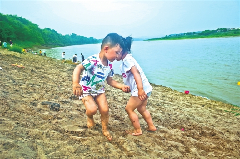 這處天然而且免費(fèi)的親水玩沙圣地,就位于大渡口區(qū)大濱路的牛欄壩。