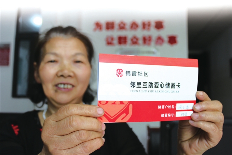 錦霞社區相關負責人介紹,每一位像顏曉琴一樣定期到社區做志愿服務的居民,可以得到一張鄰里互助愛心儲蓄卡。