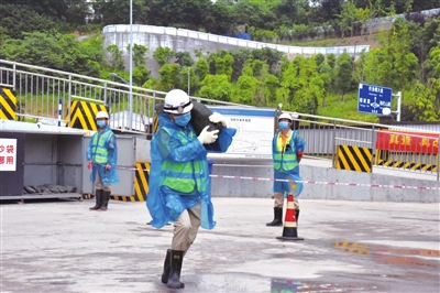 (記者:王玲美 文/圖)6月16日下午,重慶軌道十八號線建設(shè)運營有限公司在重慶軌道十八號線土建八標白居寺站施工通道工區(qū)舉辦“2020年突發(fā)事件綜合應(yīng)急演練”。演練內(nèi)容包括暴雨預(yù)警、防汛準備、險情上報、防汛搶險、隧道坍塌搶險、善后處置等6個科目。