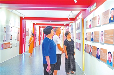 9月16日,新山村街道滬漢社區,居民在“知學·勞模館”參觀。