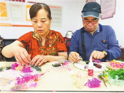區委老干局“銀耀義渡”志愿者制作團扇 張永香 攝