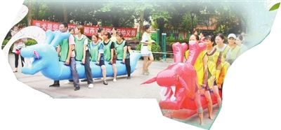 區住房城鄉建委同社區居民進行劃旱地龍舟比賽 張永香 攝