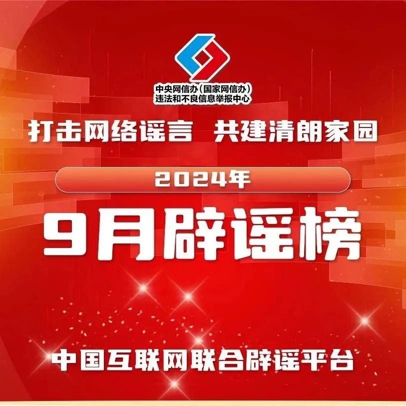 打擊網(wǎng)絡謠言 共建清朗家園 中國互聯(lián)網(wǎng)聯(lián)合辟謠平臺2024年9月辟謠榜