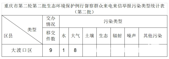 重慶市第一生態環境保護督察組向大渡口區交辦第二批群眾信訪舉報件9件